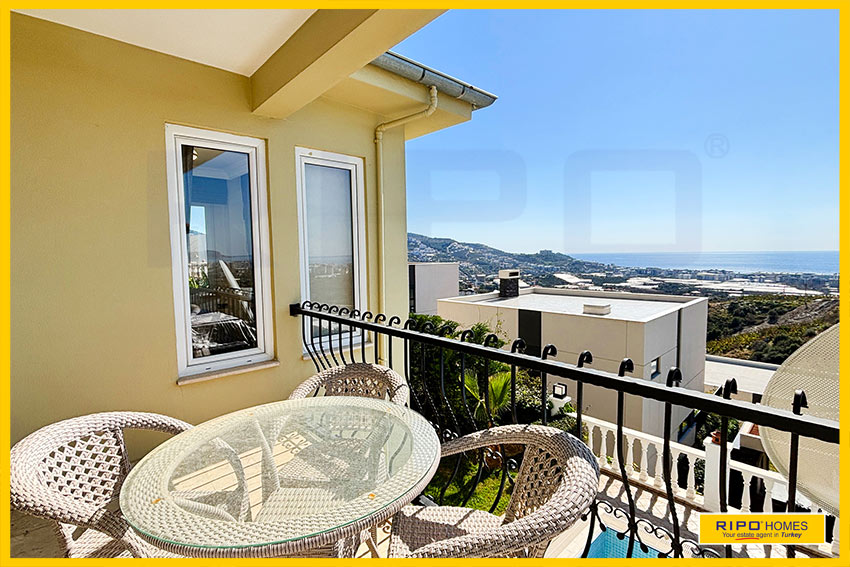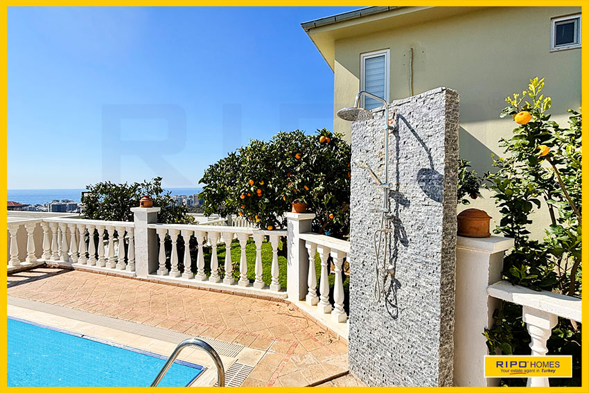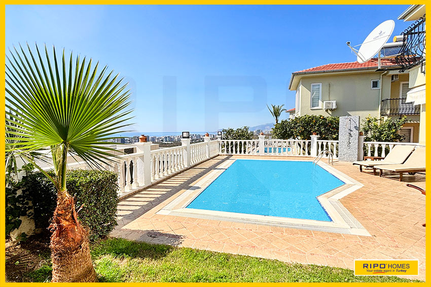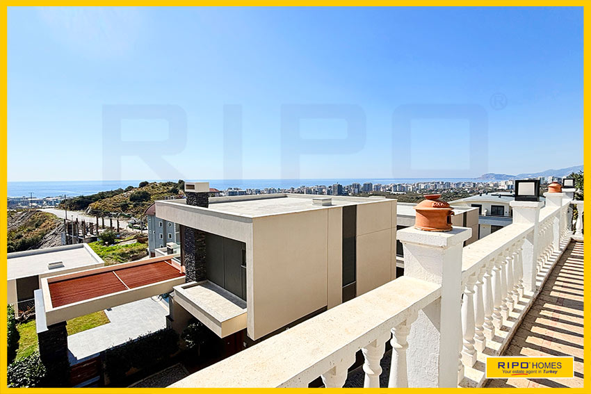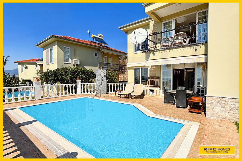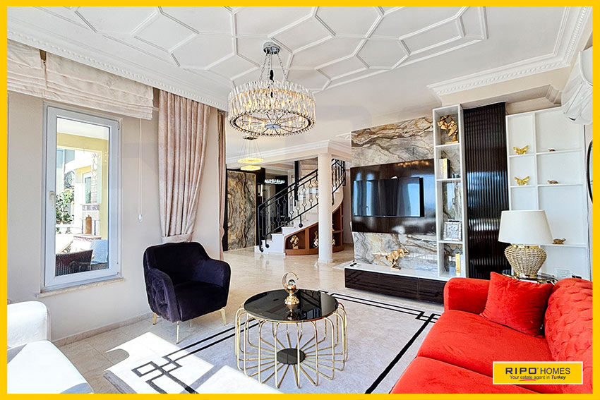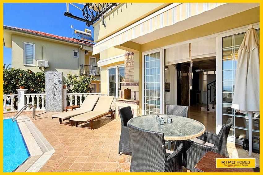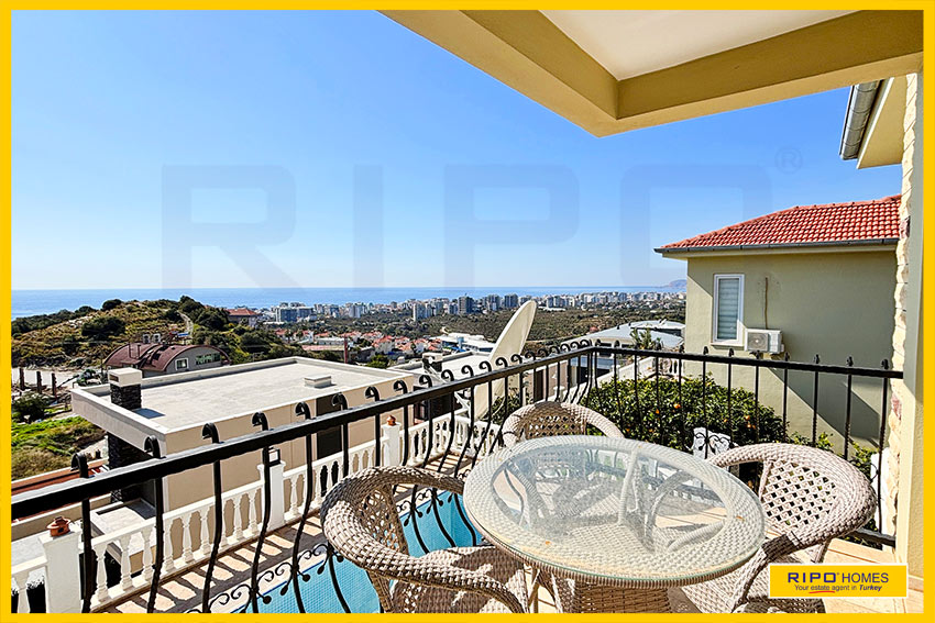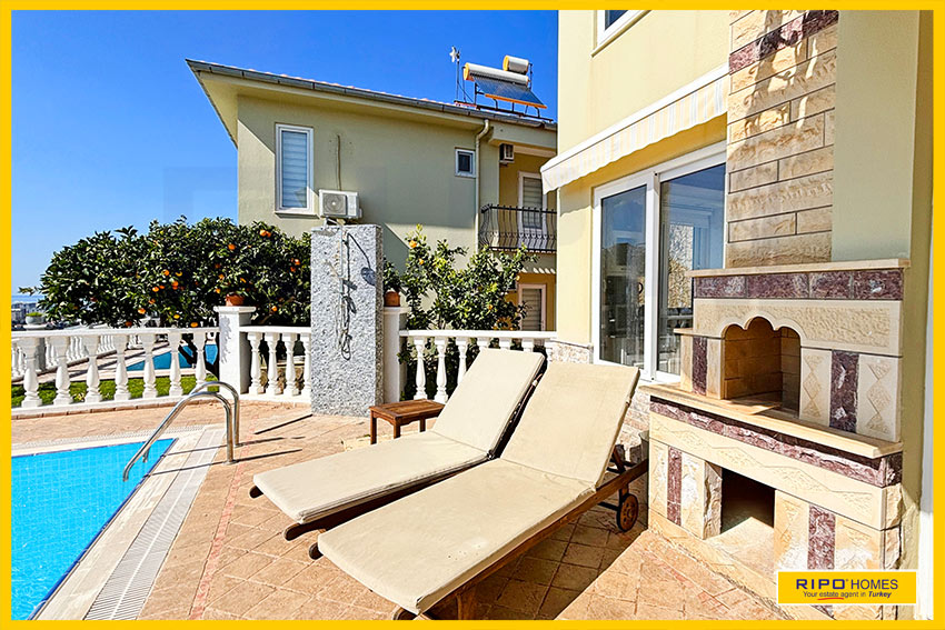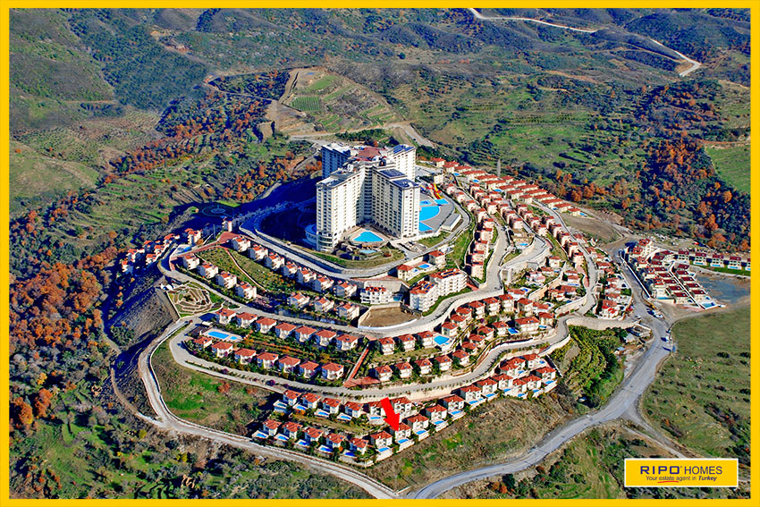 A luxurious 3 bedroom villa with private pool in the exclusive residential complex at Gold City. Situated in a fantastic location in the hills above Kargicak, it has fabulous views of the Mediterranean coast and the Taurus Mountains. This villa is idyllically situated and offers the perfect retreat with all amenities close by. Immaculately decorated and furnished throughout, it is thoughtfully designed and offers 200 m2 of tranquil and airy living space. The property reflects style and relaxation, opening into a wide, comfortable open plan lounge and living area. From here, there is access to a partially separate stylish dining room with windows looking out towards the blue shoreline. On this level, there is also a modern, well-equipped and sunny family kitchen with a view of the pool area outside, and a large guest bathroom. An ornate metallic winding staircase leads to the upper floor and a large landing area. This provides a sunny place to relax or work, with doors to a balcony at the front of the property which overlooks the pool. All 3 bedrooms have stunning outlooks and are generous sizes and there is also a shared bathroom on this level. The two large double bedrooms have private balcony access, and the master bedroom has en-suite shower facilities. Patio doors from the main living room open onto the spectacular terrace. Here there is an inviting private swimming pool, outdoor shower and extensive sunbathing terraces, all with a stunning view of the coast. A relaxing seating area and a stone BBQ provide the perfect place for those warm afternoons and balmy evenings entertaining at home. This villa is the perfect choice for anyone seeking a relaxing getaway that offers everything they could need close by. As a resident of Gold City, you can use all the prestigious onsite facilities which include swimming pools, bars, a shopping centre and 7 superb restaurants. Gold City also has a fitness centre, spa, sauna, massage, Turkish bath, children’s clubs and its very own amphitheatre. There is a shuttle bus service provided for residents to the beautiful private beach or the cultural sights of Alanya 18km away.