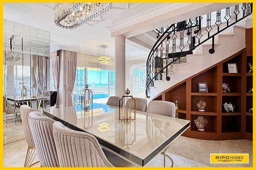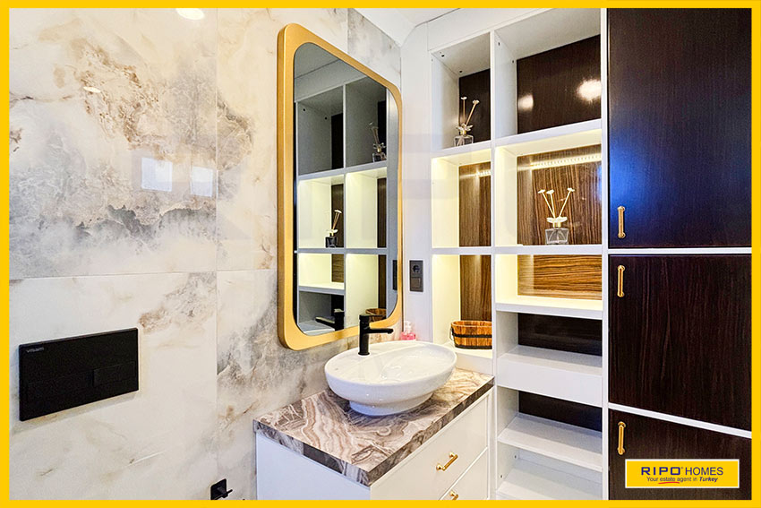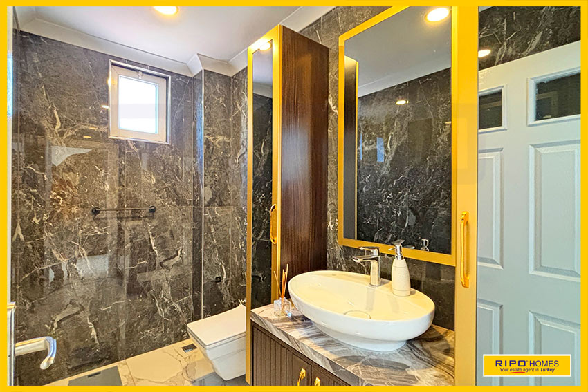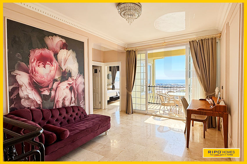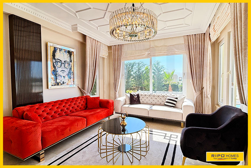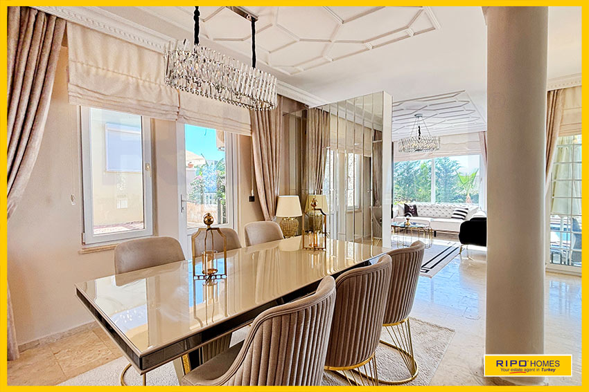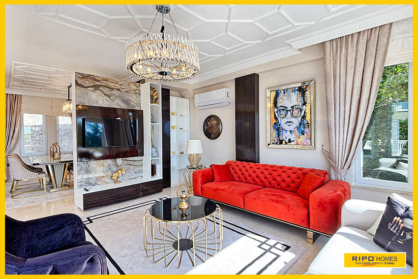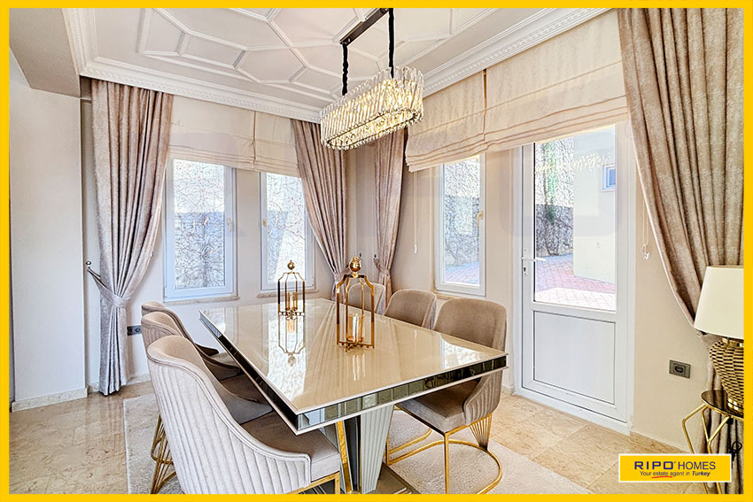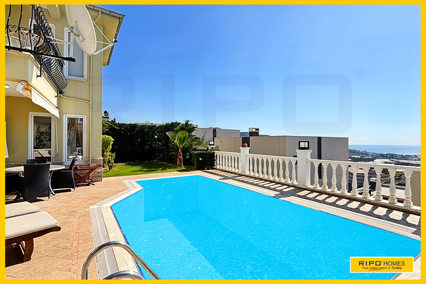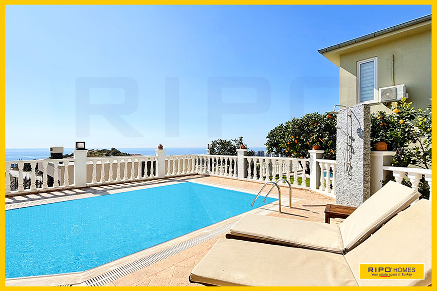 A luxurious 3 bedroom villa with private pool in the exclusive residential complex at Gold City. Situated in a fantastic location in the hills above Kargicak, it has fabulous views of the Mediterranean coast and the Taurus Mountains. This villa is idyllically situated and offers the perfect retreat with all amenities close by. Immaculately decorated and furnished throughout, it is thoughtfully designed and offers 200 m2 of tranquil and airy living space. The property reflects style and relaxation, opening into a wide, comfortable open plan lounge and living area. From here, there is access to a partially separate stylish dining room with windows looking out towards the blue shoreline. On this level, there is also a modern, well-equipped and sunny family kitchen with a view of the pool area outside, and a large guest bathroom. An ornate metallic winding staircase leads to the upper floor and a large landing area. This provides a sunny place to relax or work, with doors to a balcony at the front of the property which overlooks the pool. All 3 bedrooms have stunning outlooks and are generous sizes and there is also a shared bathroom on this level. The two large double bedrooms have private balcony access, and the master bedroom has en-suite shower facilities. Patio doors from the main living room open onto the spectacular terrace. Here there is an inviting private swimming pool, outdoor shower and extensive sunbathing terraces, all with a stunning view of the coast. A relaxing seating area and a stone BBQ provide the perfect place for those warm afternoons and balmy evenings entertaining at home. This villa is the perfect choice for anyone seeking a relaxing getaway that offers everything they could need close by. As a resident of Gold City, you can use all the prestigious onsite facilities which include swimming pools, bars, a shopping centre and 7 superb restaurants. Gold City also has a fitness centre, spa, sauna, massage, Turkish bath, children’s clubs and its very own amphitheatre. There is a shuttle bus service provided for residents to the beautiful private beach or the cultural sights of Alanya 18km away.