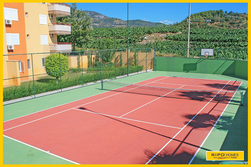Outside, there is a gorgeous swimming pool and sunbathing terraces, with fabulous water features in the gardens. There is also a sauna, games room, tennis court and a shaded BBQ area for entertaining friends. The complex offers a peaceful retreat but is only 2400m to the coast, and under 2km into Mahmutlar centre for shopping and dining out.
