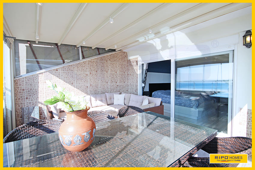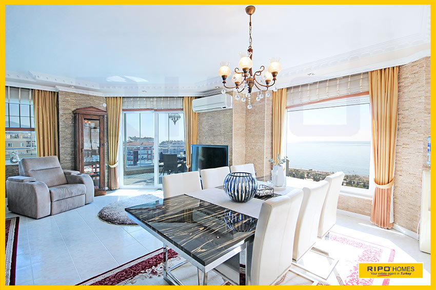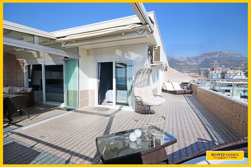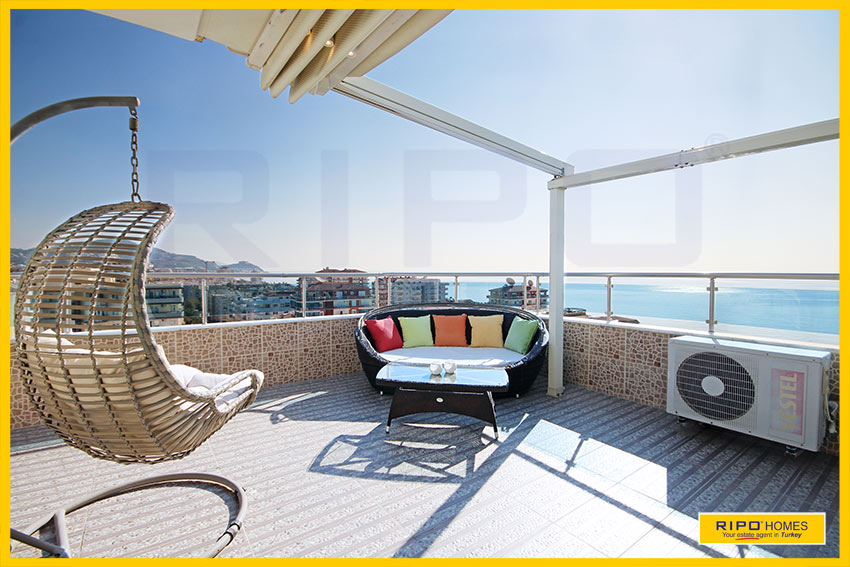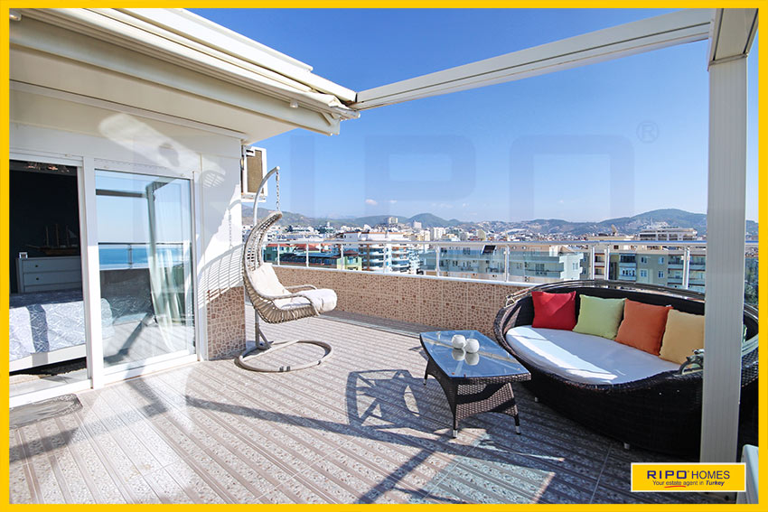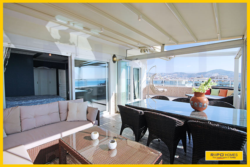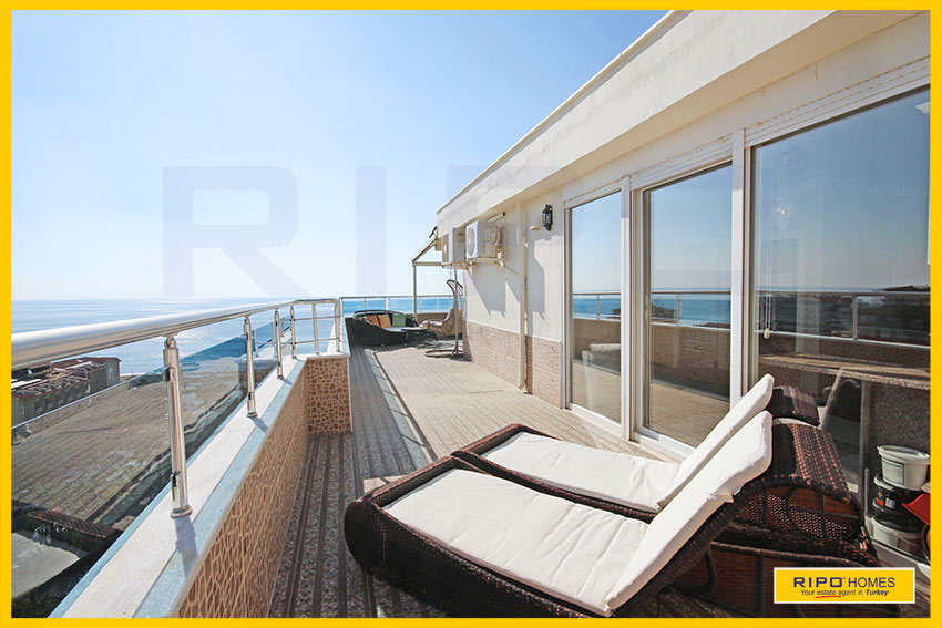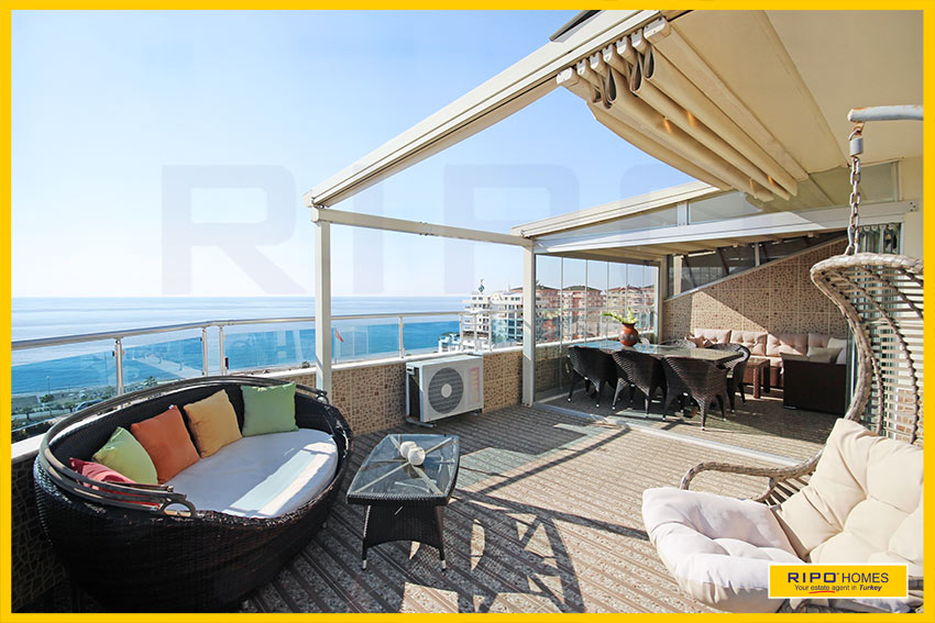 Upea 4 makuuhuoneen kattohuoneisto merinäköalalla ja lähellä rantaa Alanyan Mahmutlarissa