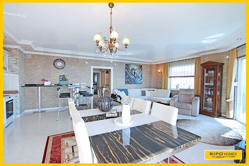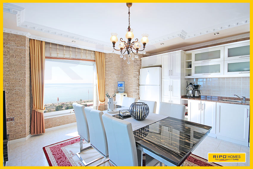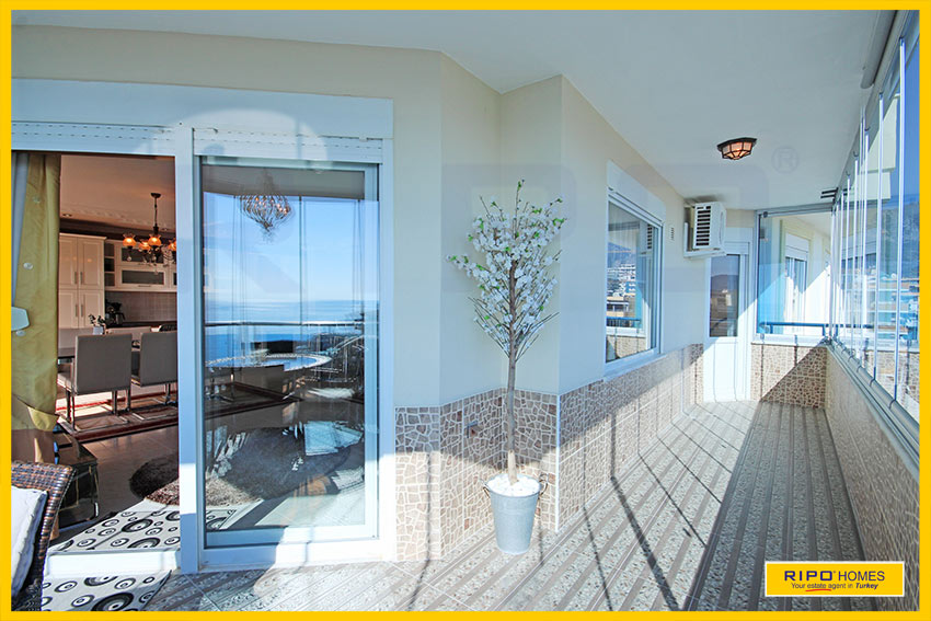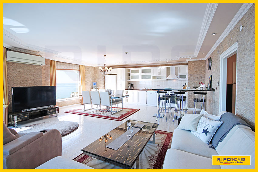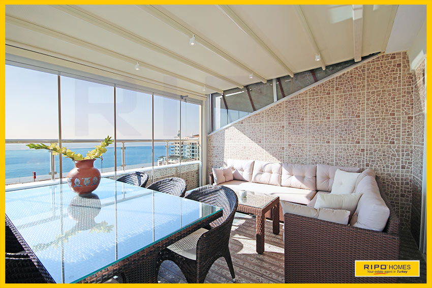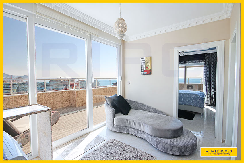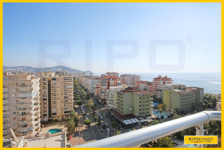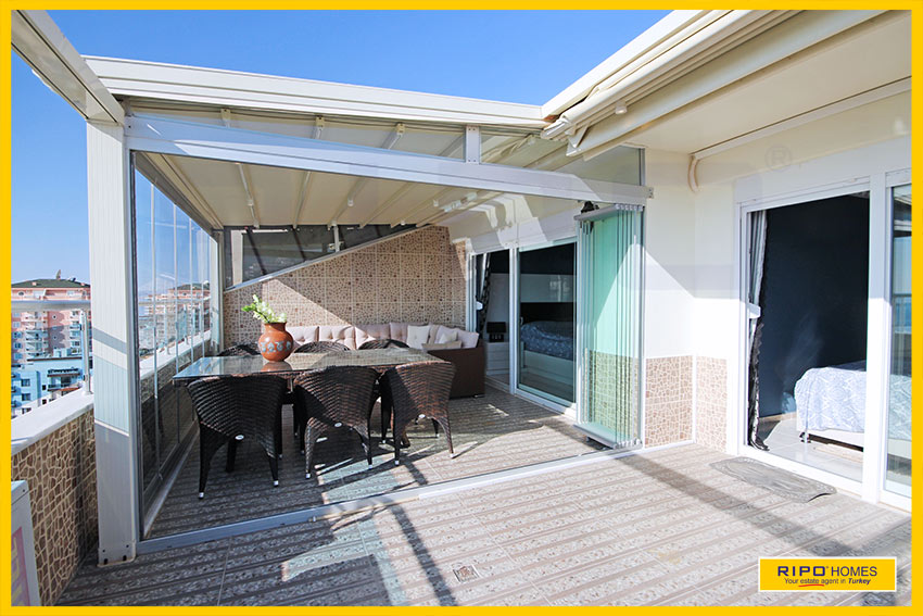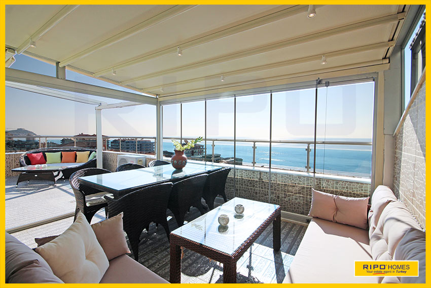 Upea 4 makuuhuoneen kattohuoneisto merinäköalalla ja lähellä rantaa Alanyan Mahmutlarissa