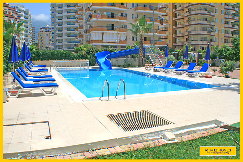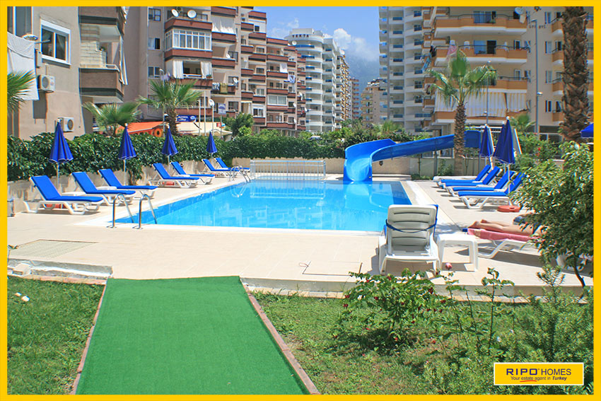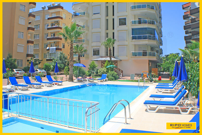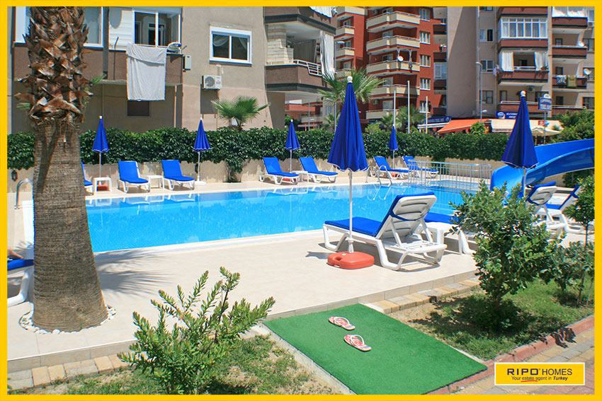 Huoneisto sijaitsee ihanteellisella paikalla, kompleksissa jossa ihana uima-allas ja aurinkoterassi, kuntosali ja yksityinen pysäköintialue. Jos kyllästyt uima-altaan äärellä löhöilyyn niin matkaa rannalle on vain 200 metriä. Kaikki palvelut ja mukavuudet löytyy lähialueelta jossa suuri valikoima kauppoja, ravintoloita, kahviloita ja markkinoita, jotka pidetään kahdesti viikossa. Alanyan keskustaan on matkaa vain 11 km.