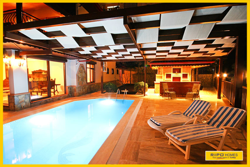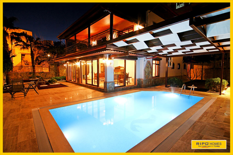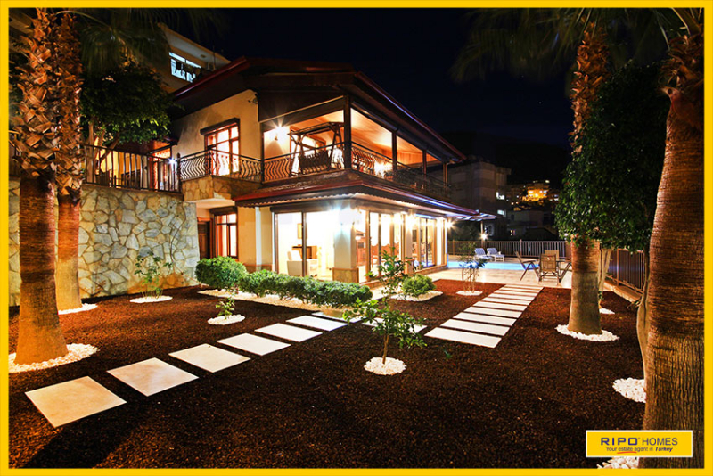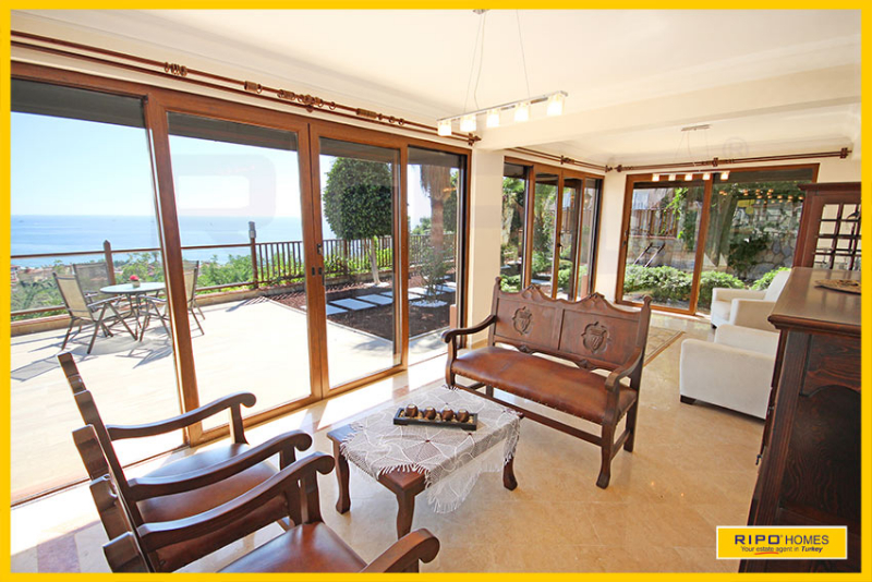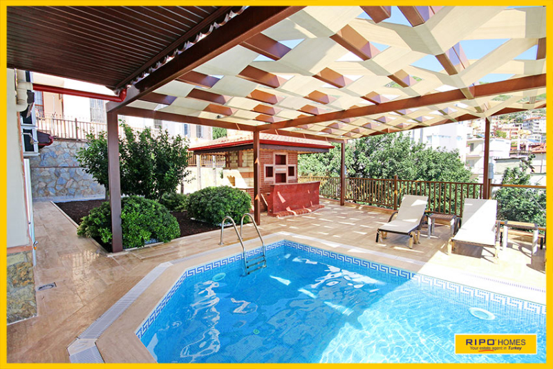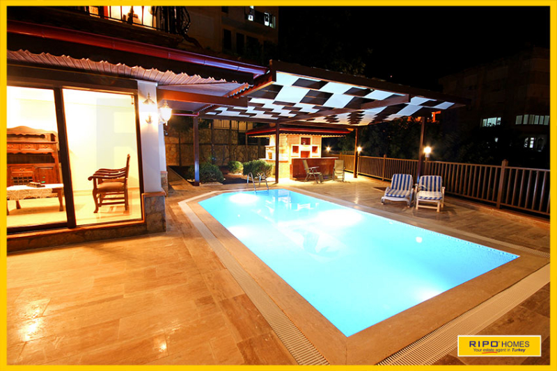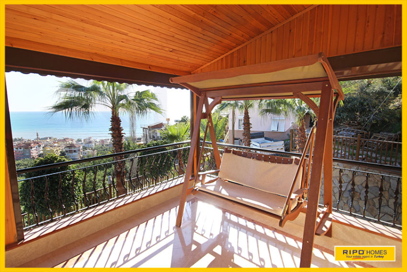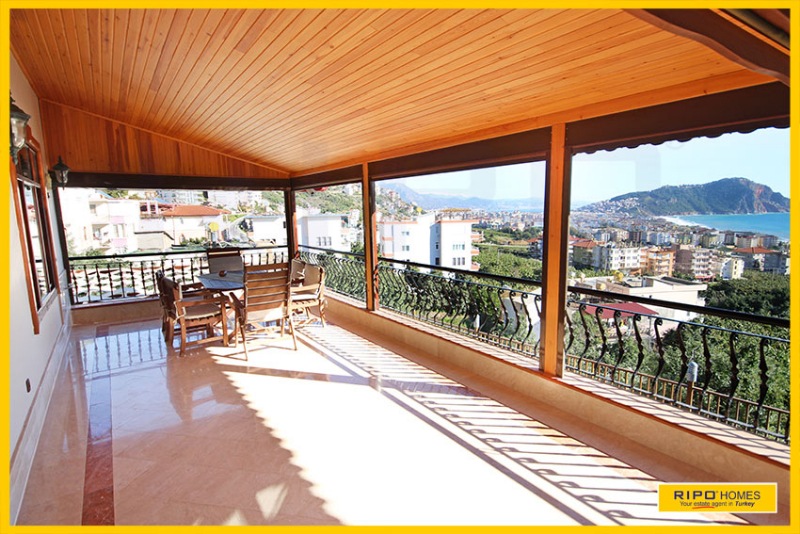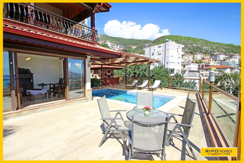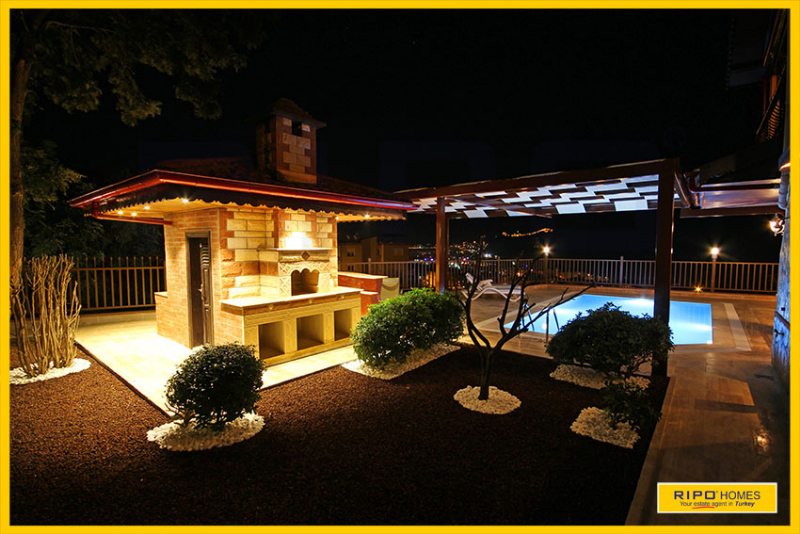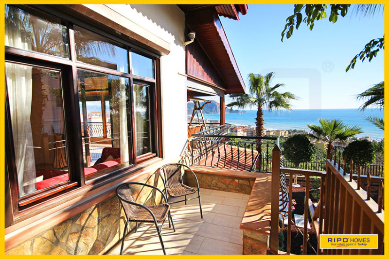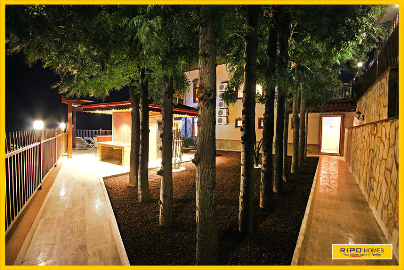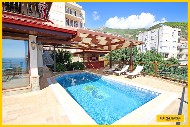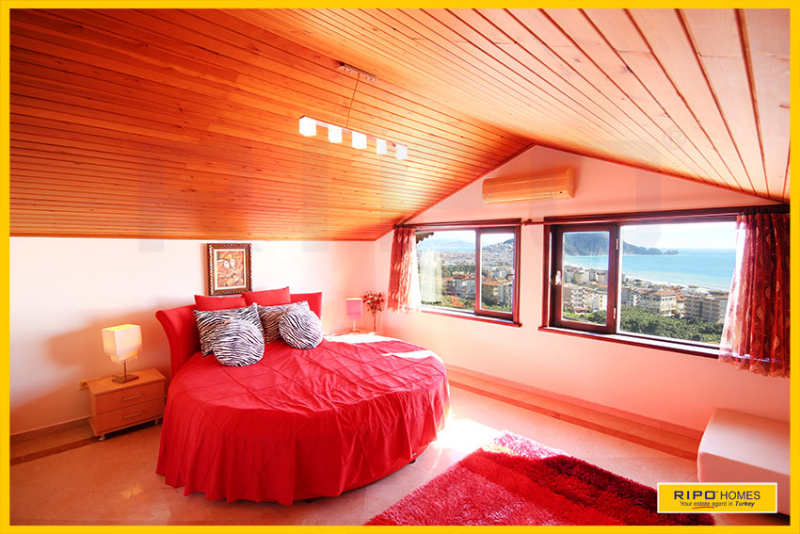 Denne moderne og stilfulde seks-værelses villa ligger på bjergsiden i Dinek, tæt på Alanya. Den har spektakulær uhindret udsigt over havet, Taurusbjergene og den imponerende borg i Alanya.
