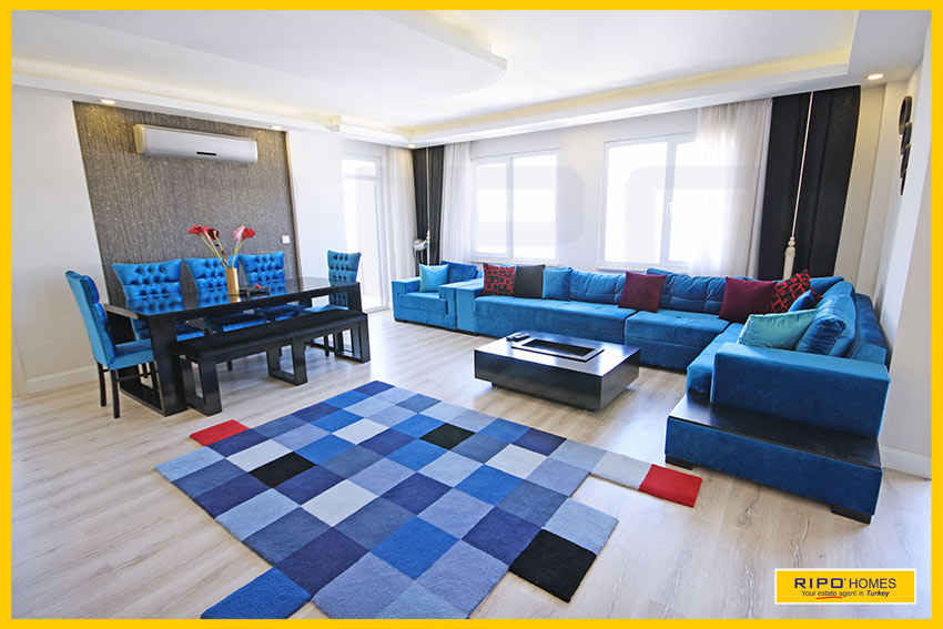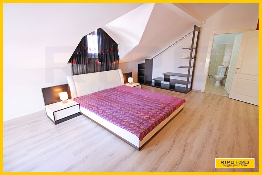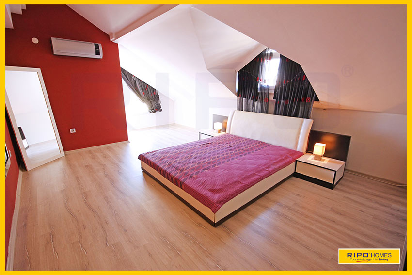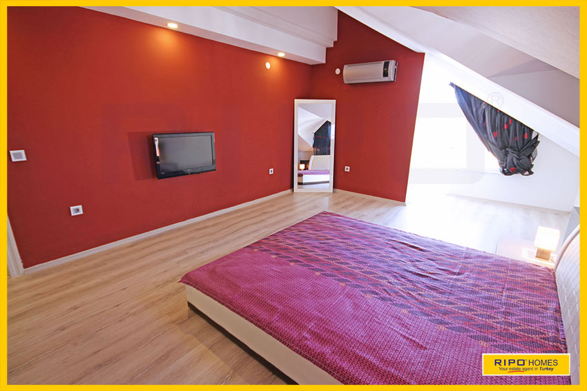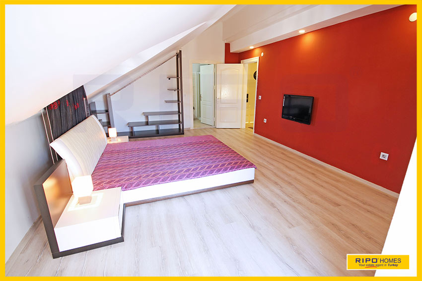 A beautiful 3 bedroom penthouse apartment in Oba, close to the sandy beach and with all amenities close by. With 180m2 of open plan space, this lovely apartment covers two floors, both with wonderful views of the Taurus mountains and the Meditteranean coastline. Stylish furniture and decor provide a welcoming feeling, and there is a large, bright combined lounge and dining area, perfect for entertaining or relaxing. To one end is a partially separate fully equipped modern kitchen and a staircase from here leads to the upper floor. On this lower level, there is also a lovely guest bedroom with private balcony access and a guest bathroom with bath and shower. On the upper level, there are 2 impressive double bedrooms nestled in the eaves of the property, which create an amazing space for both work and relaxation. Both these rooms have stunning feature roof windows and en-suite facilities. The master bedroom also has doors to a private roof terrace with spectacular views over the local area. Outside there is an inviting swimming pool and sunbathing terraces, and for beach lovers, it is just a 290m stroll to the sandy shore. The friendly area of Oba has a wide range of shops, bars and restaurants all on the doorstep and it is only 3km to the spectacular Alanya castle and the bustling centre, harbour and markets.