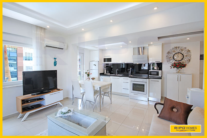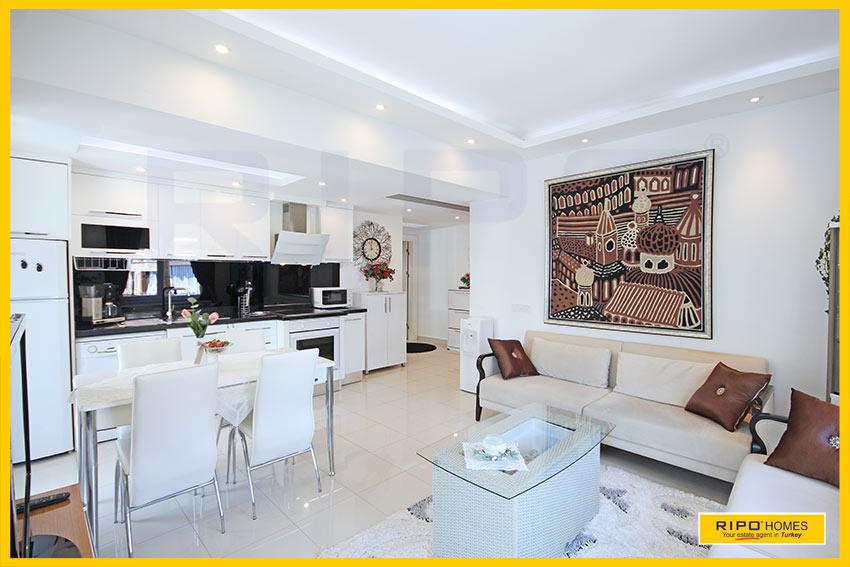 Nyt meillä olisi myytävänä tämä upea 69m2 suuri yhden makuuhuoneen huoneisto suositussa kompleksissa lähellä Kleopatra rantaa. Huoneisto en erittäin tyylikkäästi sisustettu pohjoismaalaiseen tyyliin ja vaalein sävyin joka luo valoisan ja kodikkaan tunnelman. Huoneistossa on yksi kylpyhuone, yksi makuuhuone ja avoin olohuone ja keittiö yhdistelmä jossa täysin varustettu moderni keittiö. Huoneiston kummatkin parvekkeet ovat lasitettuja ja altaalle päin.