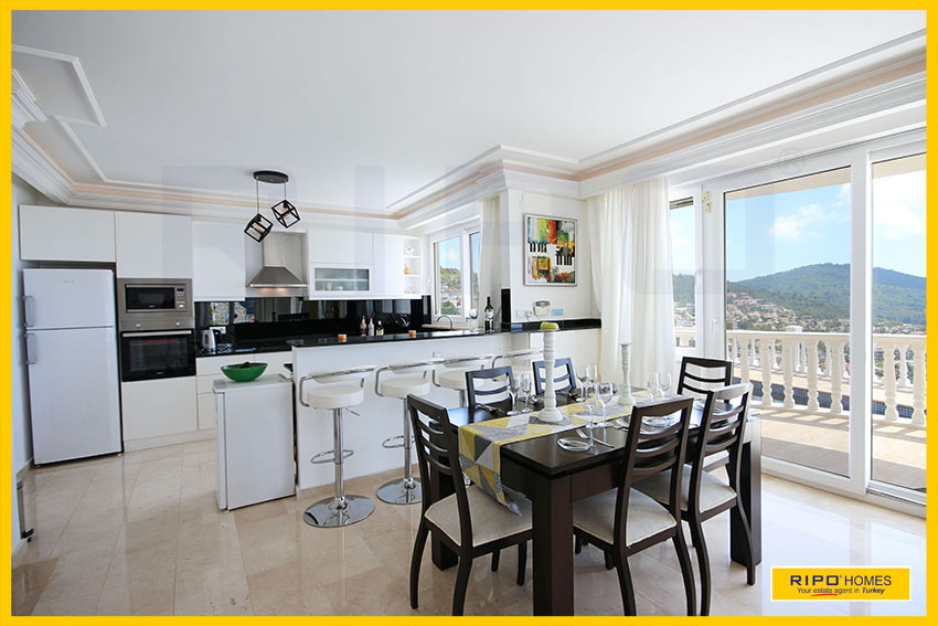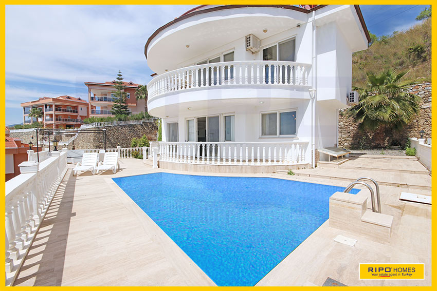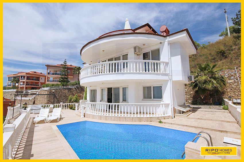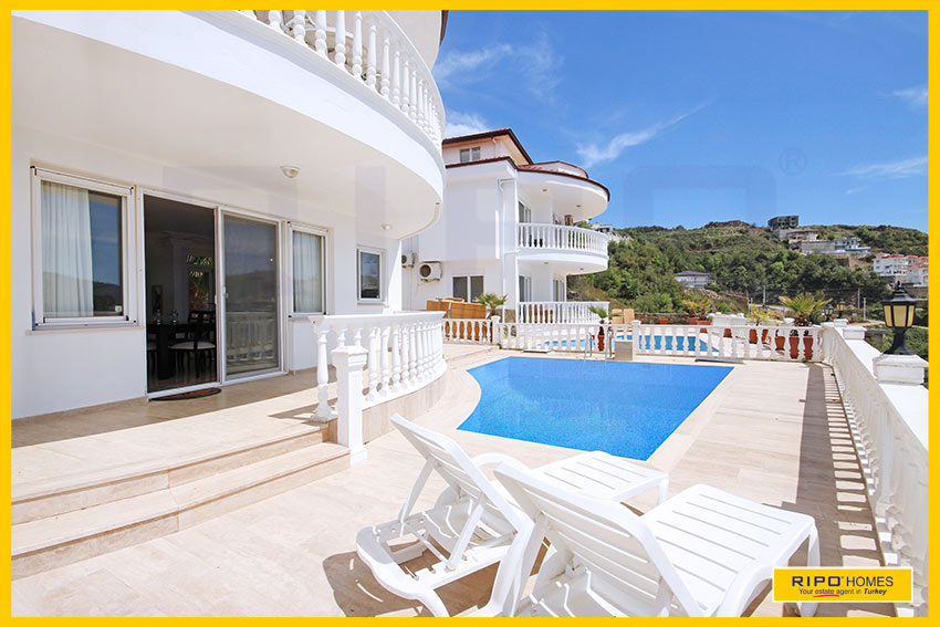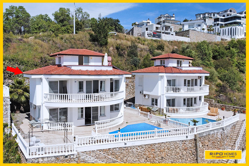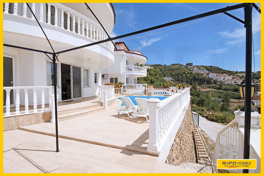 A striking design, this 4 bedroom villa nestles on a hillside offering spectacular views in the beauty and tranquillity of Kargicak, Alanya.