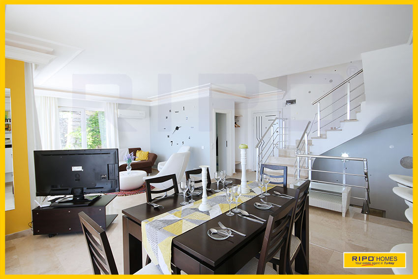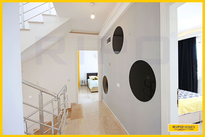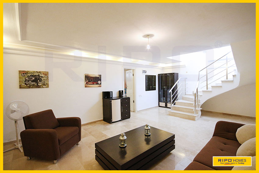 This elegant private home provides lots of opportunities for changing the room layout to suit your needs. On a 372m2 plot, it is one of just two identical villas situated in an ideal position high on the hillside and also has a private garage. Kargicak is renowned for its rural beauty and has a small village just a short journey away with markets and restaurants. Not far from Mahmutlar centre, the beautiful beach is just 3650m away, and the sights and sounds of Alanya are only 17km by road.