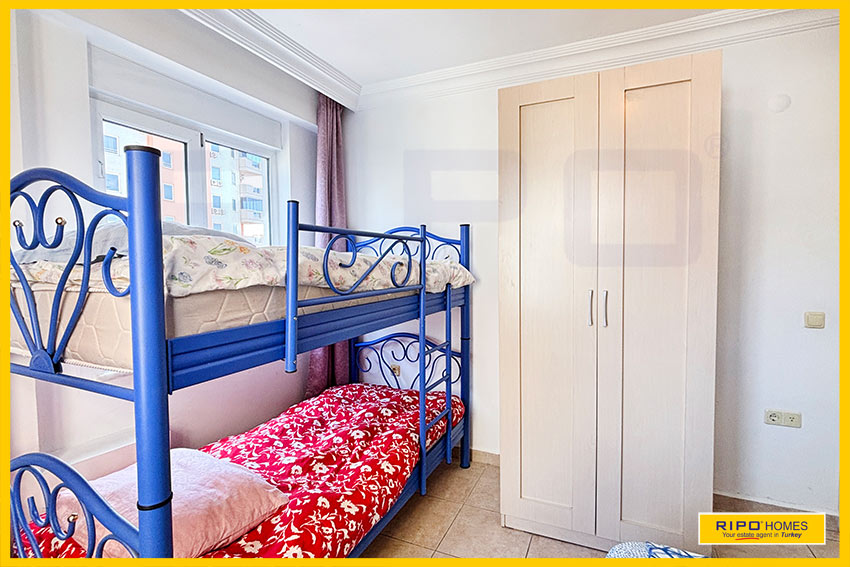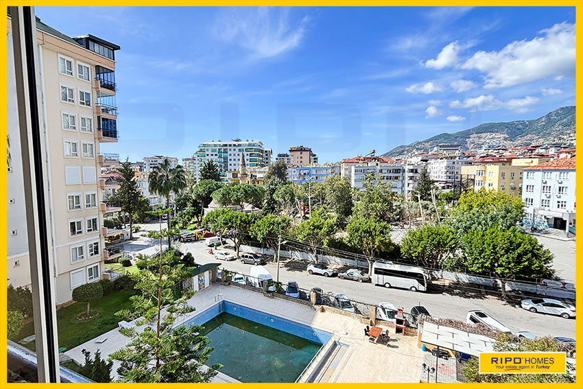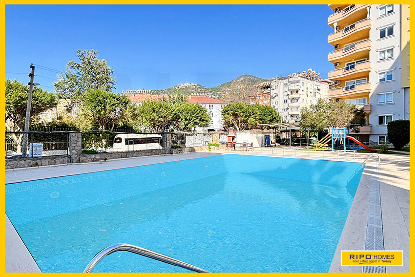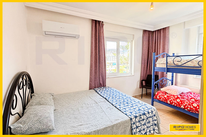 Situated within a well-maintained residential complex, residents benefit from landscaped gardens, parking areas, outdoor seating spaces, and an inviting swimming pool surrounded by sun terraces. Its convenient location near the D400 highway provides easy access to restaurants, markets, and Alanyum Shopping Centre. Located in a peaceful residential area, the property is only 700 metres from the sandy beach, making it ideal both for permanent living and for enjoying everything Alanya and its surroundings have to offer.