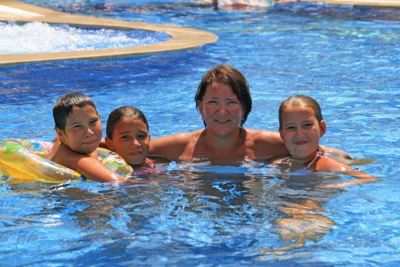 Vi hadde allerede planlagt tur i sommerferien, og da fikk vi låne en leilighet i anlegget, siden vår ikke var ferdig enda. Alt papirarbeidet fikk jeg hjelp til, og ble kjørt rundt til de forskjellige kontorer.